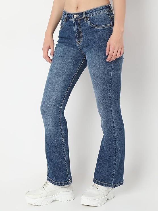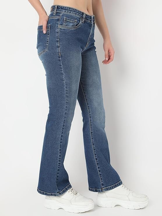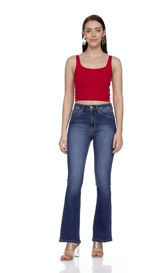 AngelFab Comfortable High Waist Strechable Boot Cut Fit Denim Solid Jeggings for Women