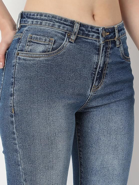 NYAKO Straight Fit High Waist Stretchable Denim Solid Jeans for Women