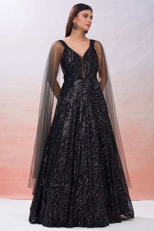 Be the first to review “Black Sequins Embroidered Net Evening Gown”