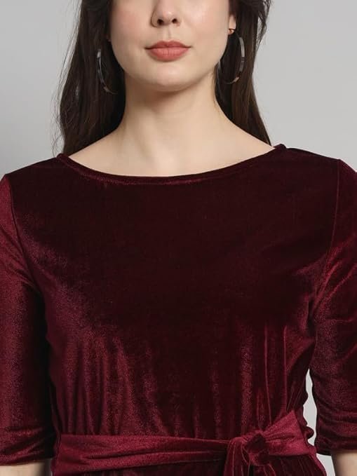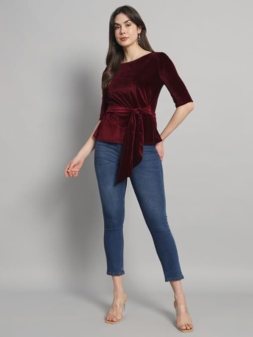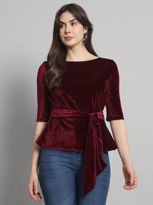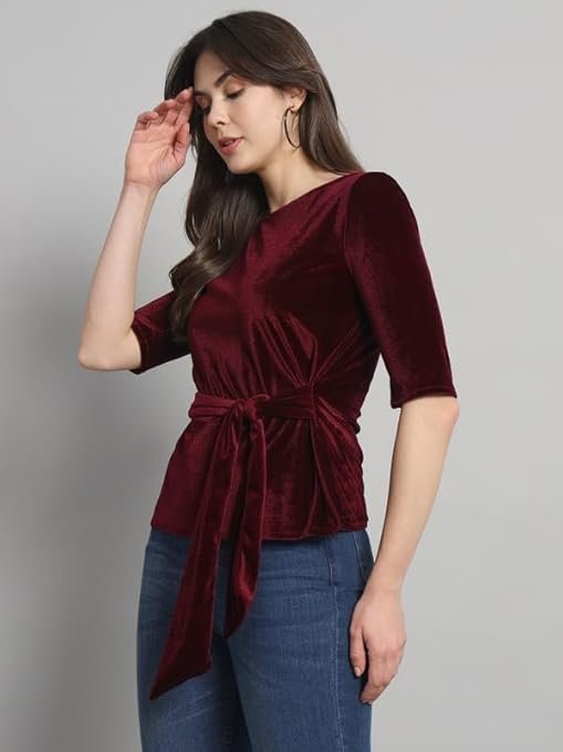 Chicava Party Top for Women with Front Tie Waistband | Shiny Velvet Half Sleeeves Stylish Outfit