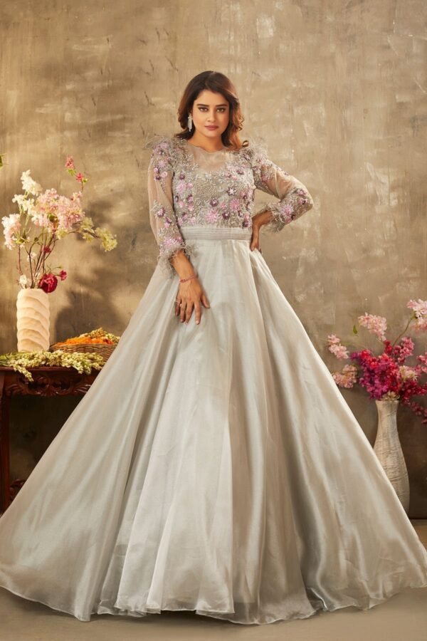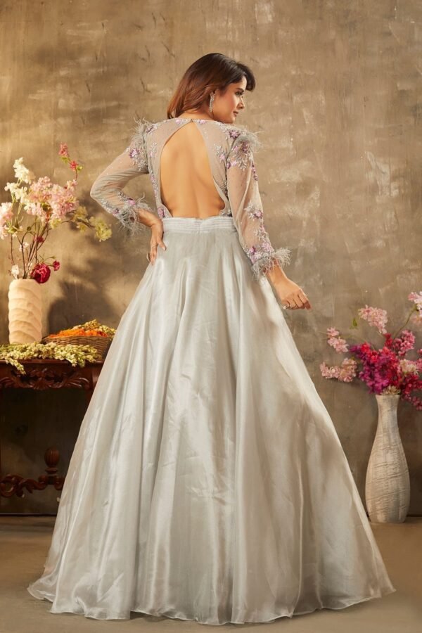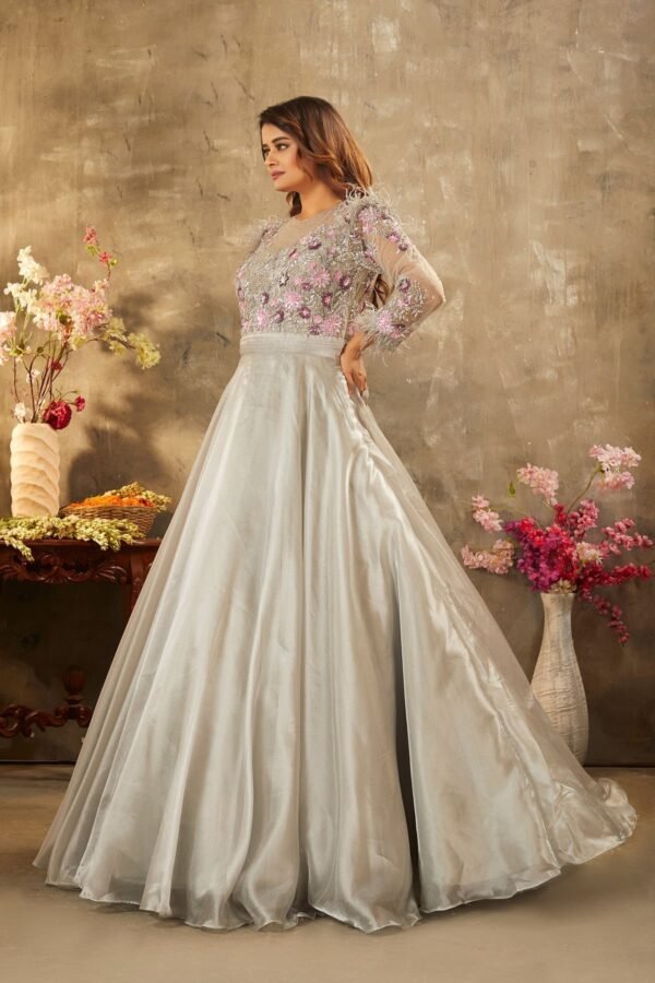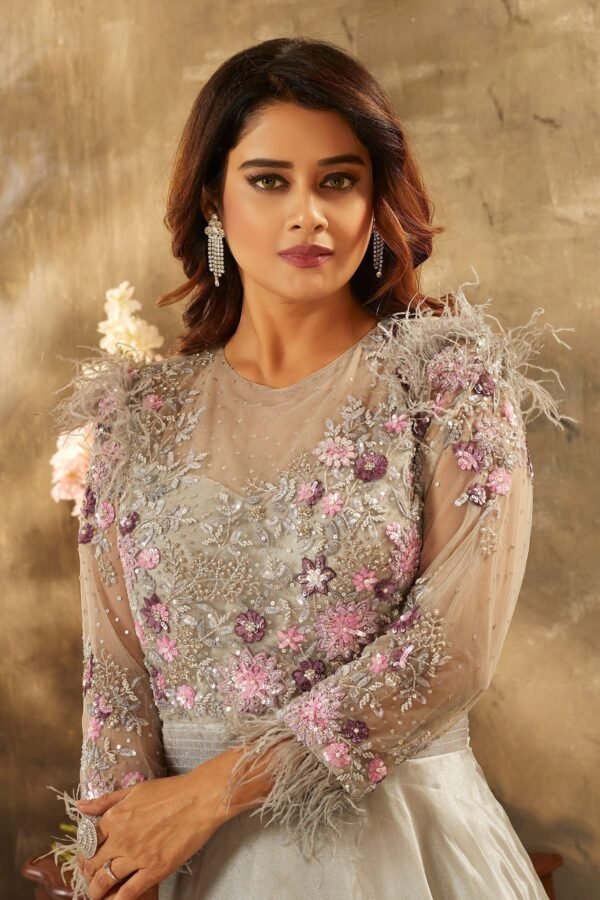 Be the first to review “Flint Grey Sequins Embroidered Shimmer Organza Cocktail Gown” Cancel reply