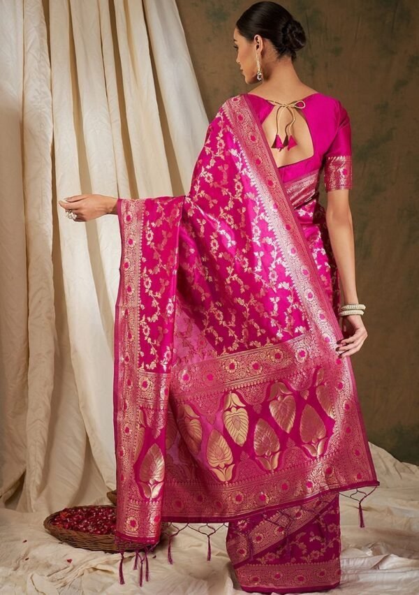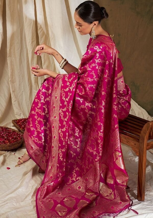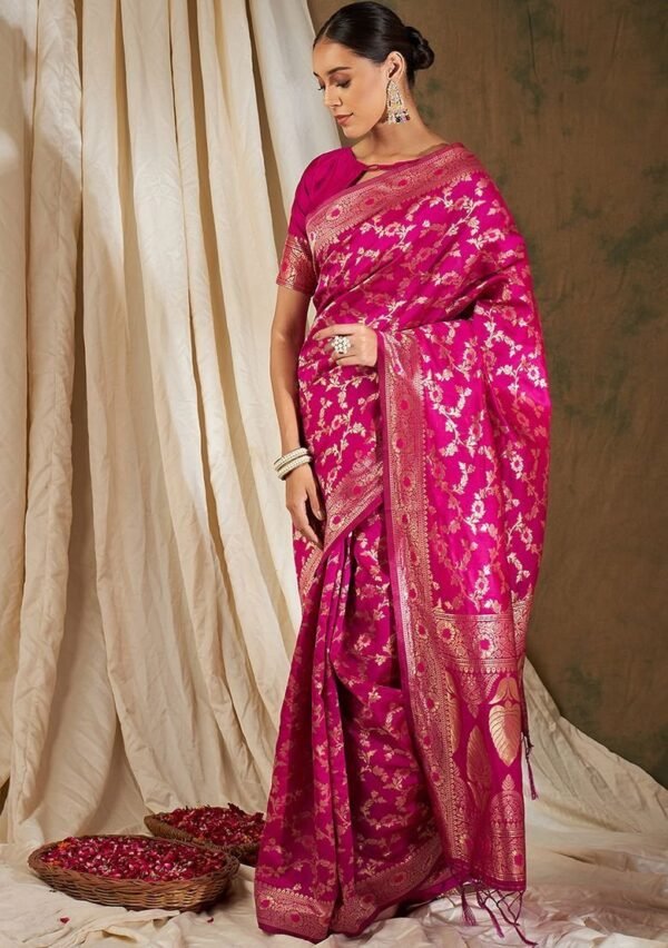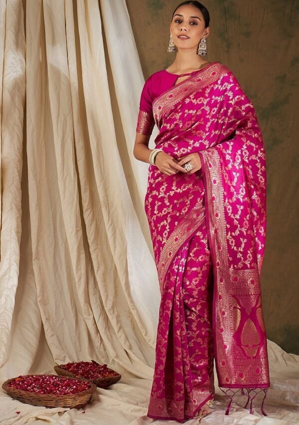 Be the first to review “Pink Woven Floral Work Banarasi Silk Saree Set”