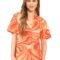 - Color: Orange || Material: Polyester || Style Type: Straight || Length Type: Waist Length || Pattern: Printed || Collar Type: Mandarin Collar || Sleeve Length: Short Sleeve || Package Includes: 1 Shirt