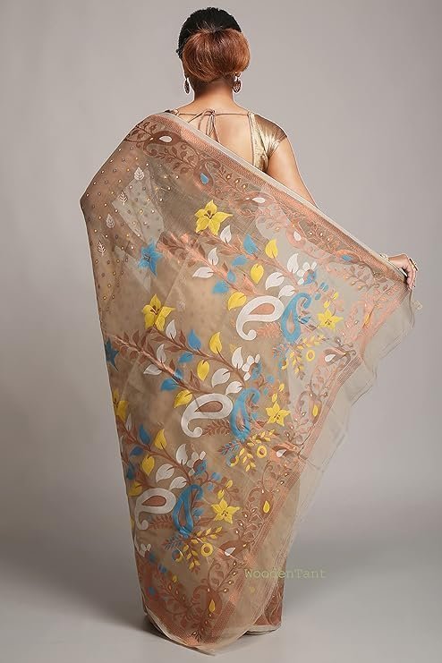 • This is not polister dhakai jamdani, This is bengal made dhakai jamdani made by art silk and 70 count of pure cotton with pure copper zari thrades in the saree