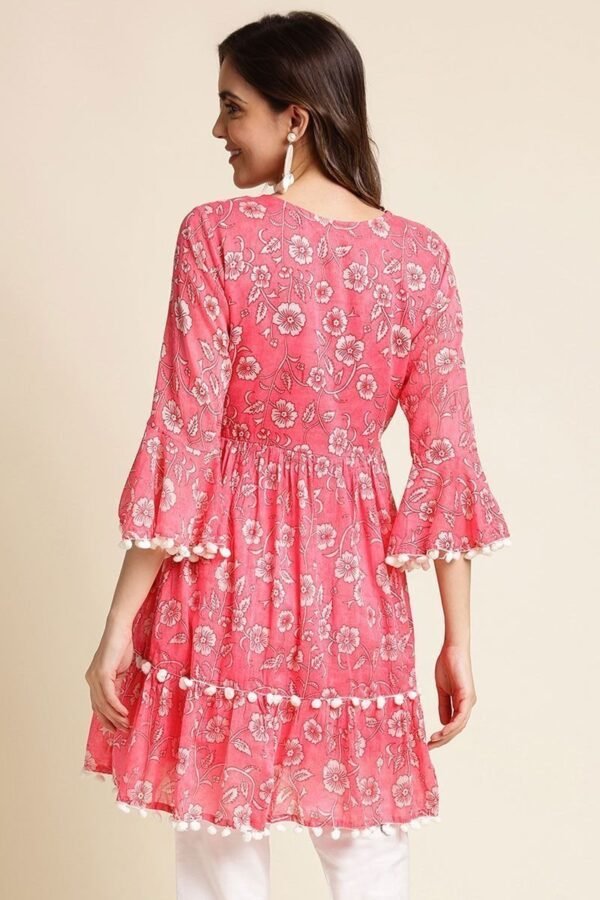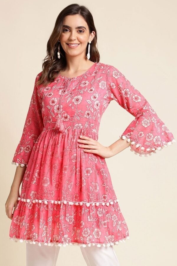 Be the first to review “Tempting Cotton Fabric Pink Color Readymade Short Kurti With Printed Work”