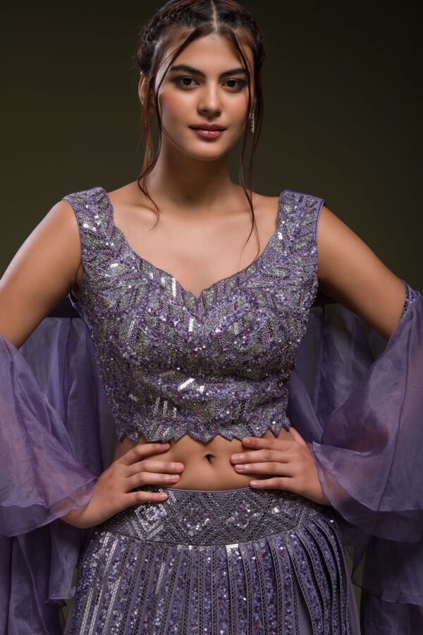 Be the first to review “Vintage Violet Sequins Embroidered Georgette Designer Lehenga” Cancel reply
