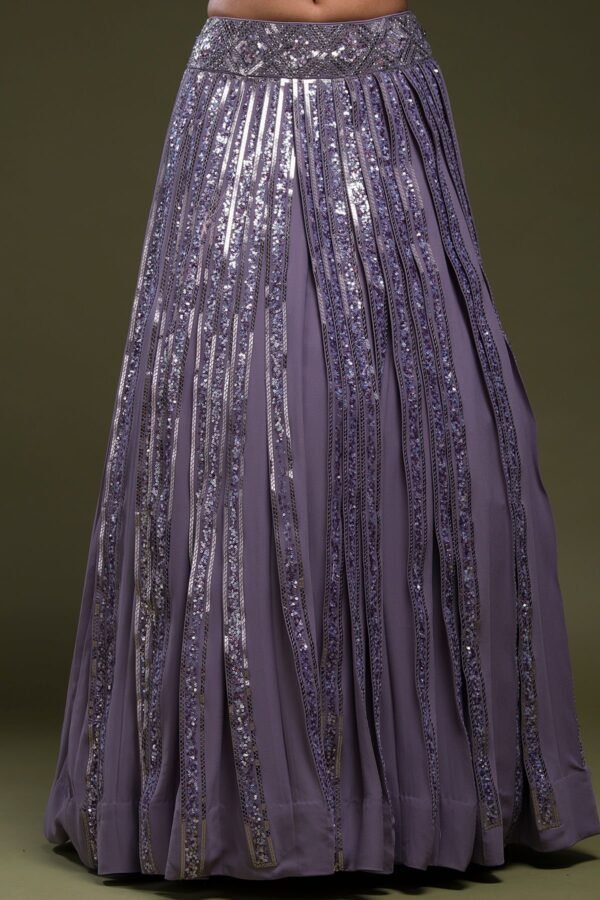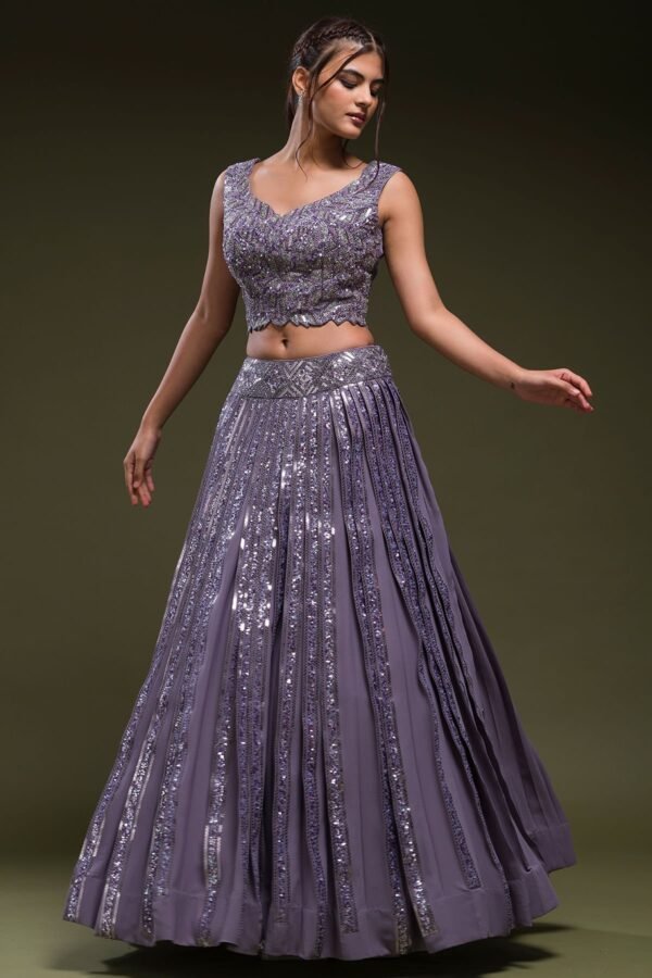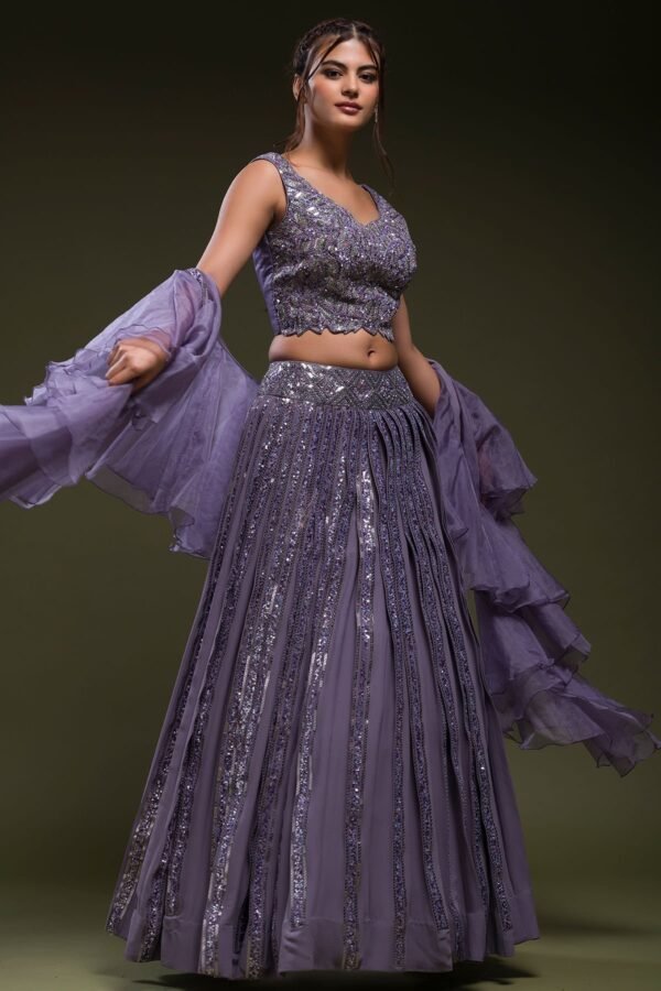 Color : Purple Craft : Embroidered Embellishment : Sequins work Fabric : Georgette Lehenga Color : Vintage Violet Lehenga Fabric : Georgette Lehenga Length : 112 cm Lehenga Style : Flared Lehenga Work : Sequins Work Purity : Pure - Dupatta