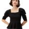 Women’s Solid Crepe Square Neck Puff Sleeve Regular Fit Peplum Knit Top
