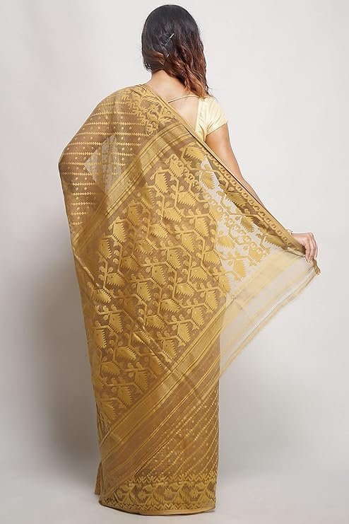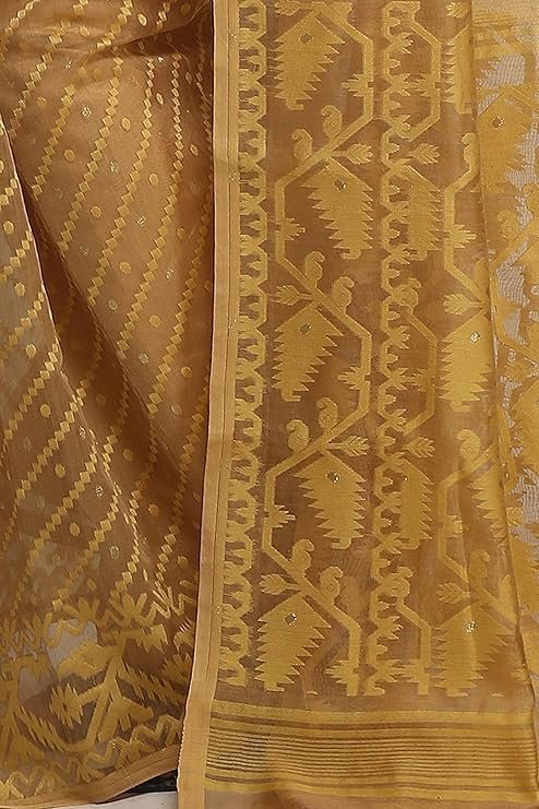 WoodenTant women’s soft cotton silk bengal dhakai jamdani saree in beige without blouse piece
