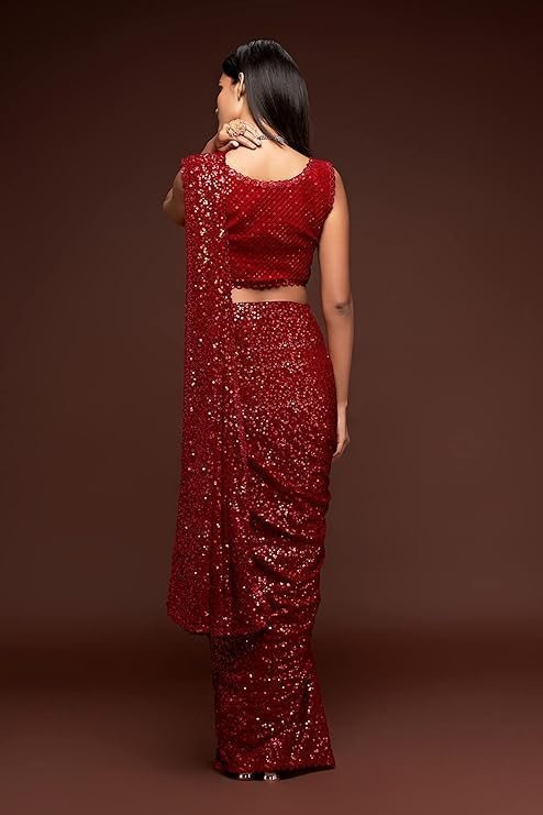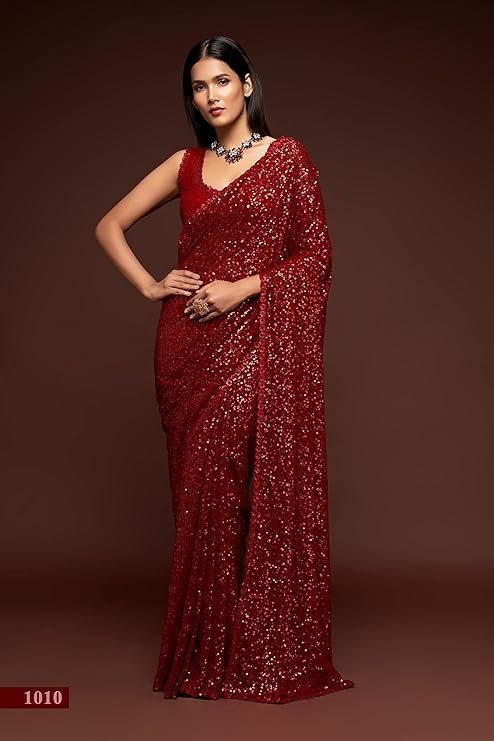 Zeel Clothing Women’s Sequins Work Heavy Georgette Saree with Blouse