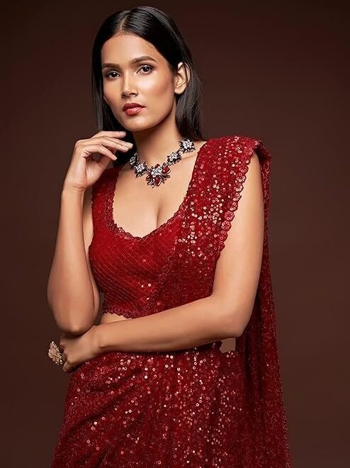 Zeel Clothing Women’s Sequins Work Heavy Georgette Saree with Blouse