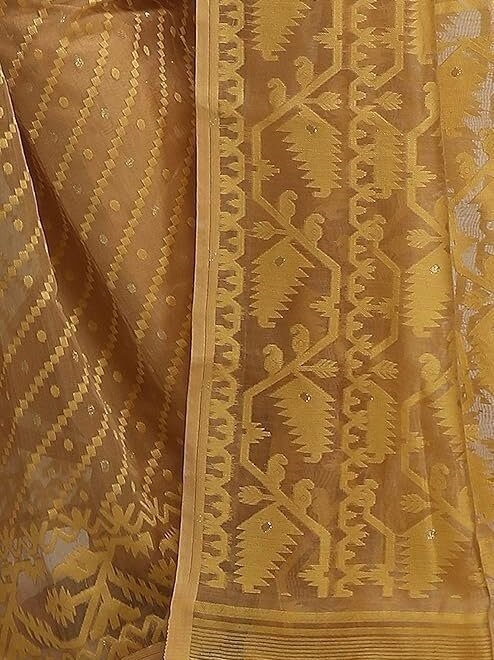 WoodenTant women’s soft cotton silk bengal dhakai jamdani saree in beige without blouse piece