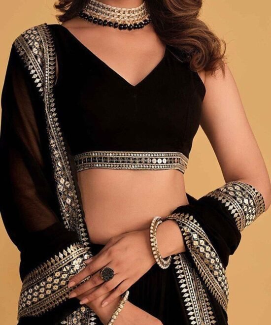 Black Sequin Embroidered Faux Blooming Lehenga Set