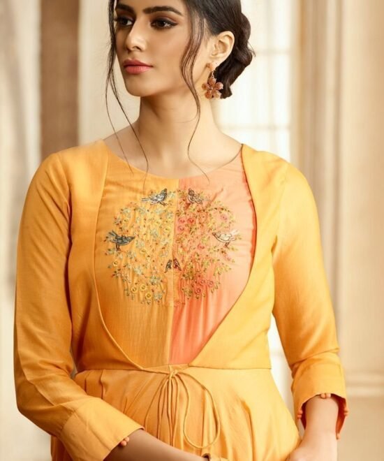 Chic Rayon Cotton Gown Style Kurti in Neutral Yellow Color